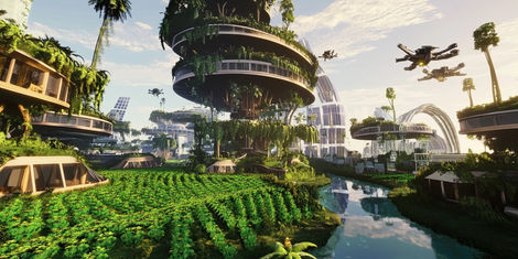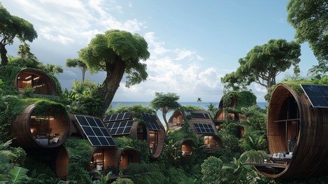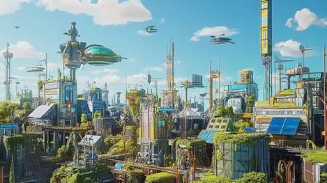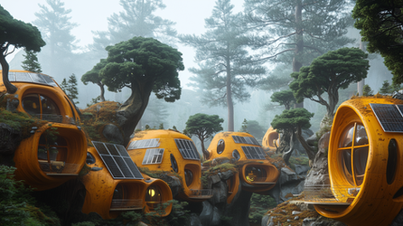 Ces paysages urbains proposent une intégration intelligente des énergies renouvelables, des bâtiments recouverts de végétation, des réseaux énergétiques décentralisés et une mobilité propre et autonome. L'architecture s’inspire des formes organiques et des écosystèmes naturels, favorisant une approche où chaque infrastructure produit plus d’énergie qu’elle n’en consomme.